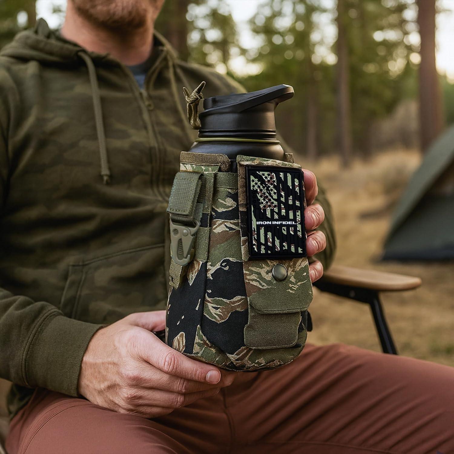 Iron InfideI Battle Bottle Sleeve - 64 oz and 32 oz Water Bottle Sleeve Only for Half Gallon 1L Steel Water Bottle | Rugged Cover with Molle for Versatile Design with Storage for Phone, Wallet & Keys(32oz Tiger Stripe)
