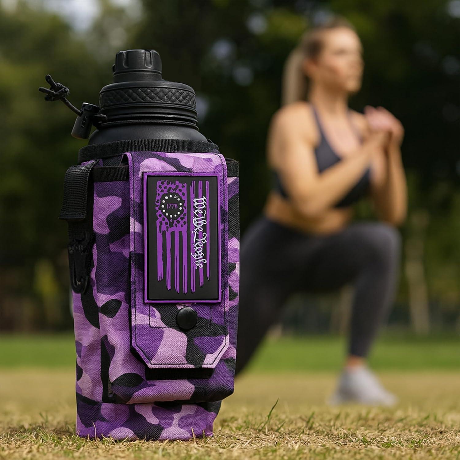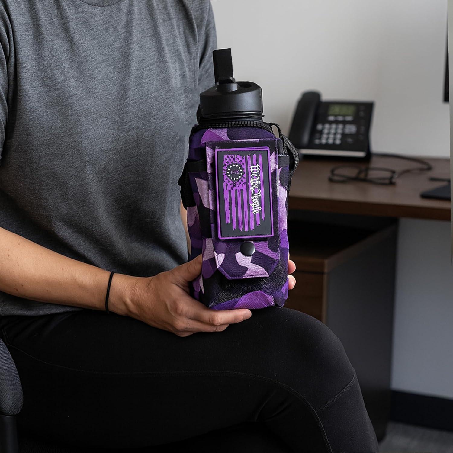 Iron InfideI Battle Bottle Sleeve - 64 oz and 32 oz Water Bottle Sleeve Only for Half Gallon 1L Steel Water Bottle | Rugged Cover with Molle for Versatile Design with Storage for Phone, Wallet & Keys(32oz Ultraviolet)