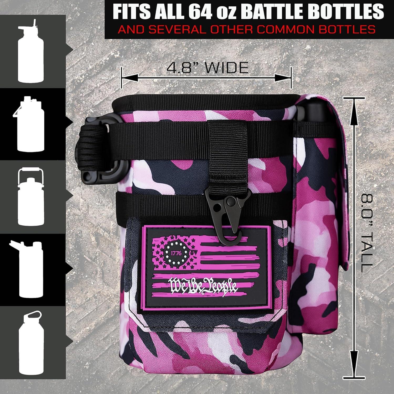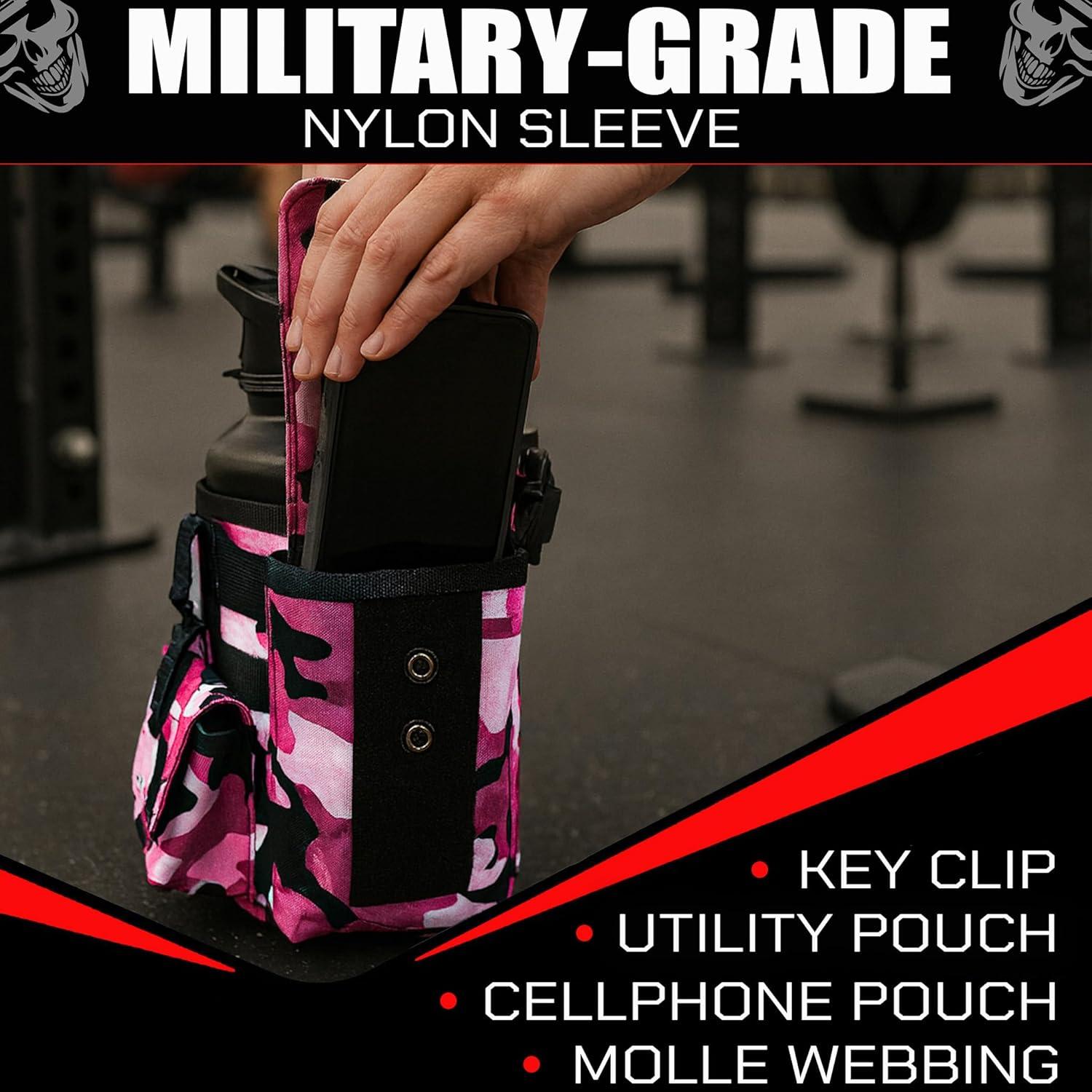 Iron InfideI Battle Bottle Sleeve – 64 oz and 32 oz Water Bottle Sleeve Only for Half Gallon 1L Steel Water Bottle | Rugged Cover with Molle for Versatile Design with Storage for Phone, Wallet & Keys(Ruthless Rose)