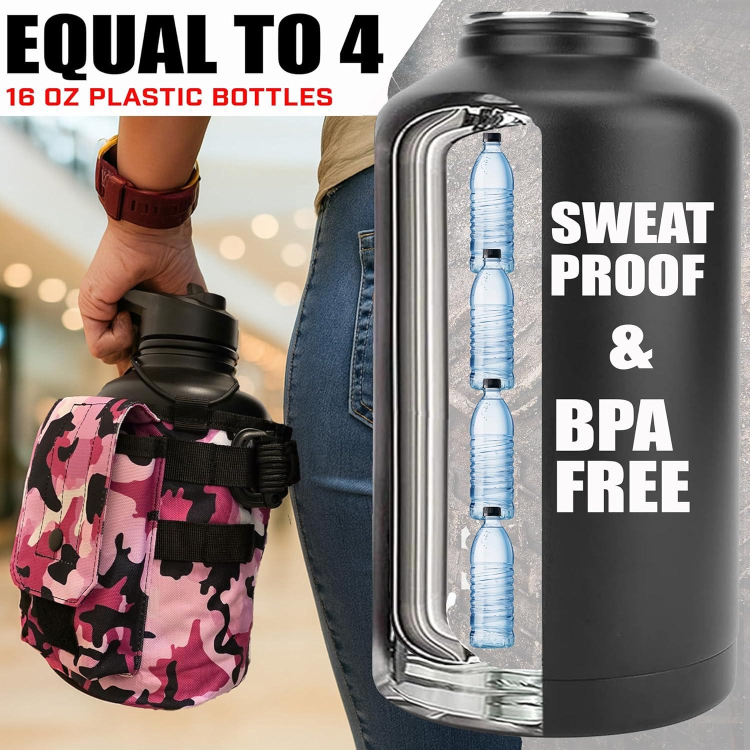 imageIron InfideI Battle Bottle Sleeve  64 oz and 32 oz Water Bottle Sleeve Only for Half Gallon 1L Steel Water Bottle  Rugged Cover with Molle for Versatile Design with Storage for Phone Wallet ampamp KeysDeep Water