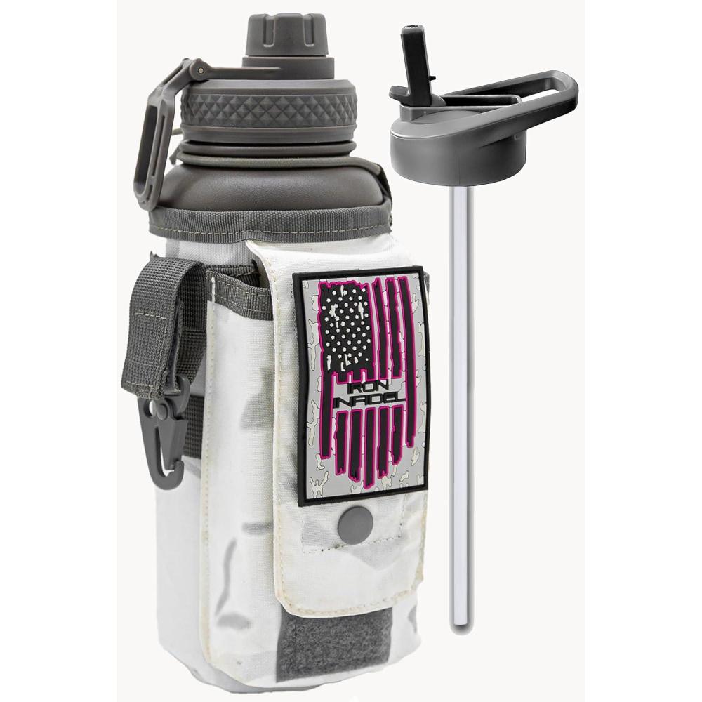 imageIron Infidel Battle Bottle  Half Gallon Water Bottle Insulated 64 oz Tactical Stainless Steel Water Jug with Handle  Gym Water Bottle with Rugged Sleeve for Storage Cobalt 2 Liter32oz  Arctic Camo
