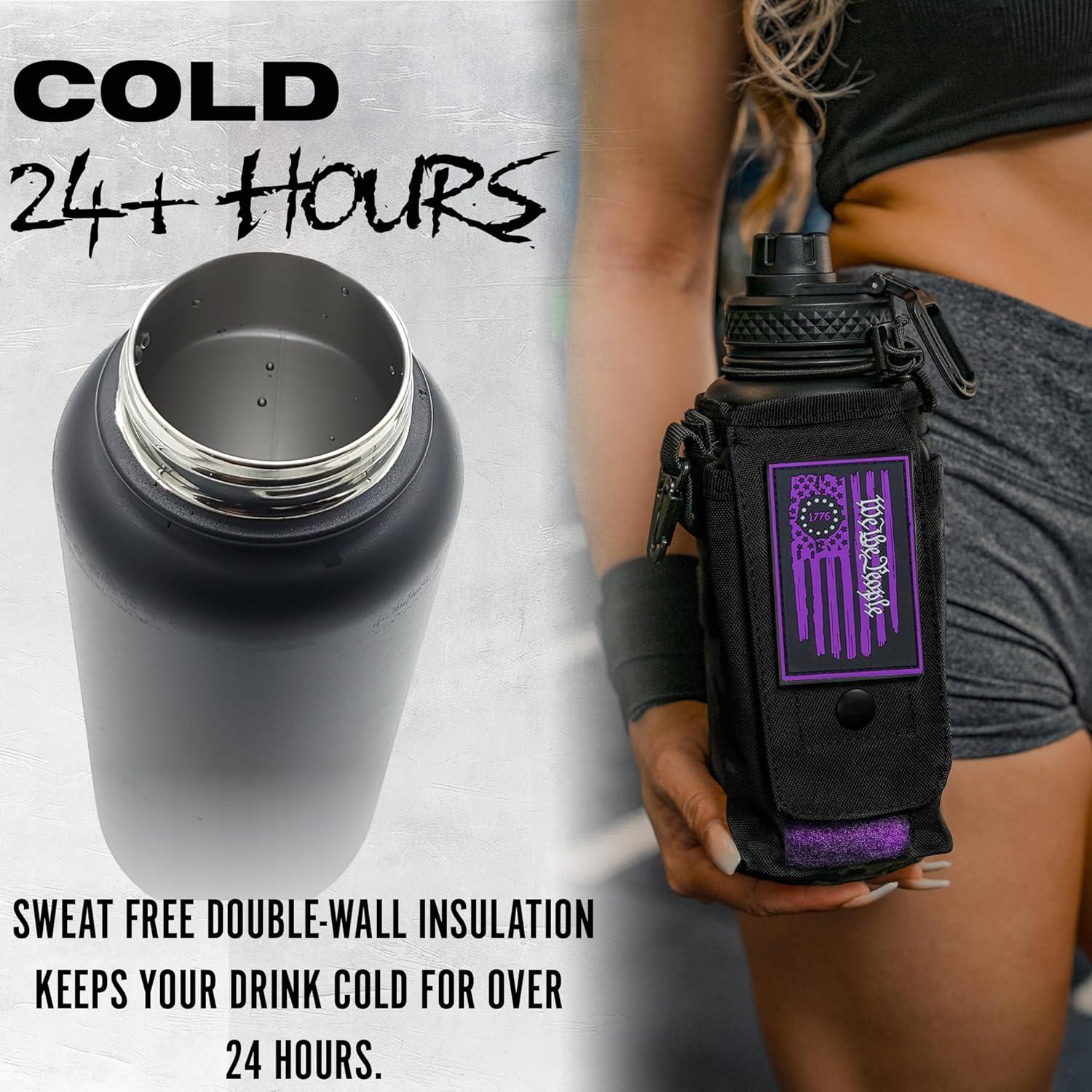 imageIron Infidel Battle Bottle  Half Gallon Water Bottle Insulated 64 oz Tactical Stainless Steel Water Jug with Handle  Gym Water Bottle with Rugged Sleeve for Storage Cobalt 2 Liter32oz  Twilight
